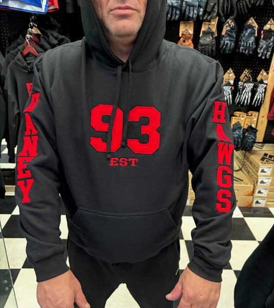 Haney Hawgs Est 93 College Hoodie Black on Black